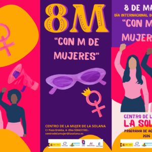 Desde el Centro de la Mujer os mostramos el Programa de Actividades con motivo del 8 de Marzo «Día Internacional de las Mujeres». 2026 Folleto 8M Os animamos a asistir al Acto de entrega del «XXV Premio Conrada Serrano por la Igualdad entre Hombres y Mujeres», que se entregará a: Mª DOLORES GARCÍA DE DIONISIO SERRANO DE […] ...