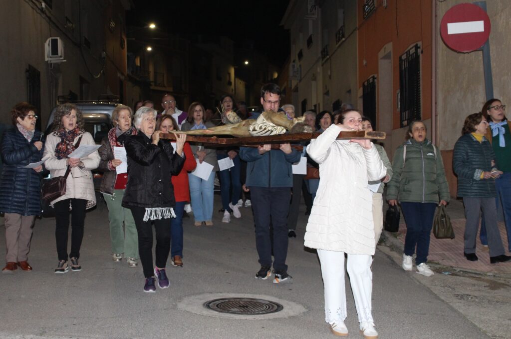 El propio párroco guio con sus oraciones y cánticos al grupo de fieles que portaba el Santo Cristo de la ermita santeña. En cada estación, las familias aguardaban con impaciencia e ilusión la llegada del séquito religioso. Los directivos de la hermandad de San Sebastián, visiblemente uniformados, también se sumaron al cortejo que estuvo precedido por la Policía Local para desviar el tráfico en algunas calles.
