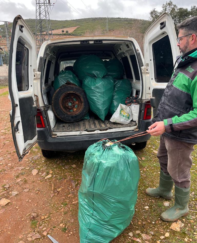 Los voluntarios actuaron en las zonas conocidas como la carretera vieja, la carretera nueva, el área de la eléctrica y el denominado ‘estrecho’. “Calculamos que hemos recogido en volumen… unos 3.000 litros, que serán unas 140 bolsas de 100 litros”. La zona con más residuos fue la carretera vieja, habitual para competiciones y también muy frecuentada por visitantes de fin de semana. “Encontrábamos un nido en el que llenamos una bolsa de 100 litros con botes, litronas, taper, garrafas, ropa… incluso una rueda de coche con llanta incluida”, lamentó.