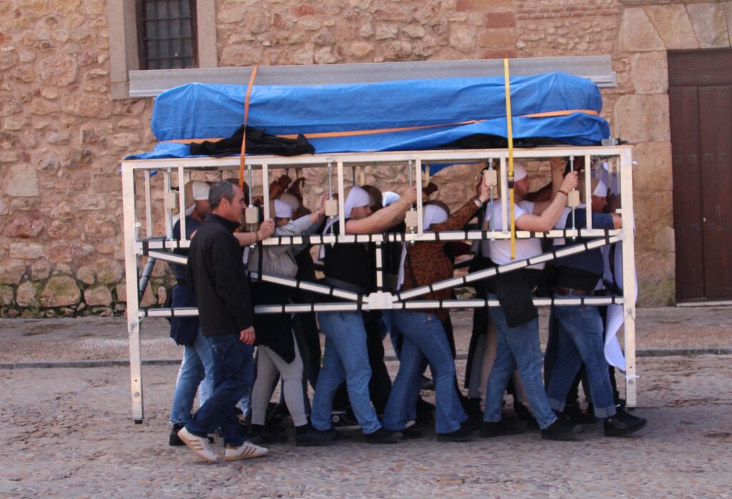 Durante la parada en la plaza, el capataz de la cofradía, José Prieto, destacó la importancia de esta actividad. “Nos sirve para preparar físicamente a los costaleros, para que estén perfectamente el día de la procesión y puedan disfrutar debajo del paso hasta el final”. Precisamente, el paso de este año es algo más grande y caben hasta cuatro costaleros más, según indicó. “Antes iban 20 y ahora son 24. Como tenemos 49 costaleros, disponemos de dos cuadrillas completas para la procesión”.