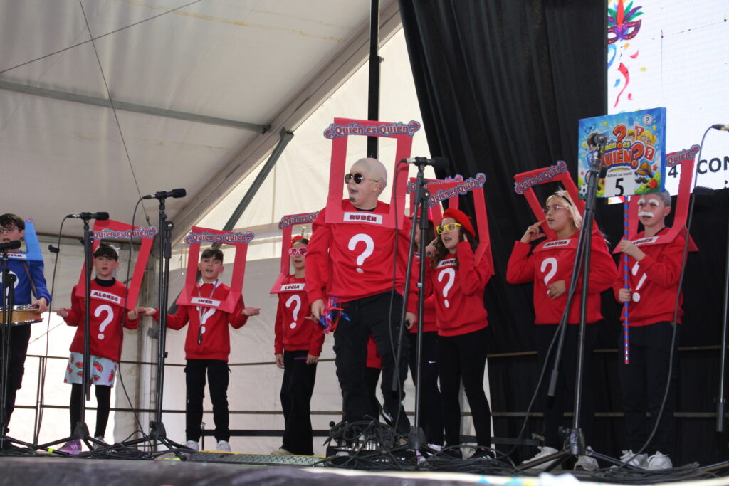 Tras casi hora y cuarto de actuaciones, el jurado se retiró a deliberar para decidir el orden de los premios. Finalmente, el primer premio se lo llevó la murga del CEIP El Santo, con su espectáculo “Jugando a través del tiempo”. Más de cincuenta niños subieron al escenario, incluyendo a los más pequeños del grupo, de tan solo 3 años, demostrando entusiasmo y desparpajo. Su creatividad y alegría conquistaron tanto al jurado como al público. Ganaron 253 puntos, 175 euros y trofeo.