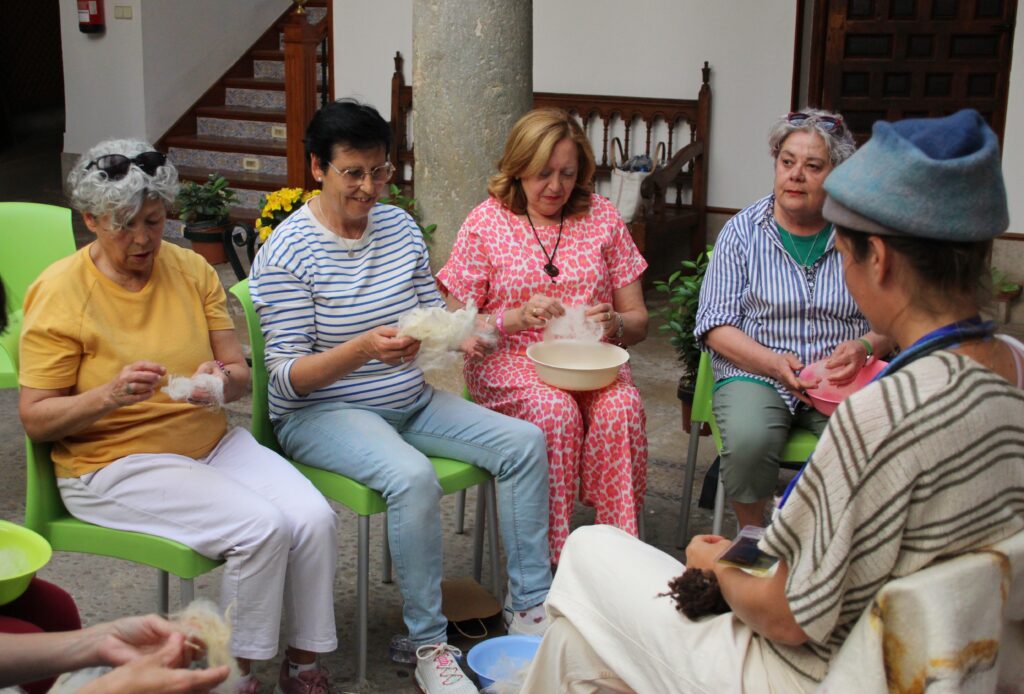 El taller trabajó con lana de oveja churra y merina, ambas con características diferentes pero igualmente válidas para el proceso artesanal. Más allá de lo técnico, lo que se generó fue un espacio de diálogo intergeneracional, donde los recuerdos afloraban casi sin querer. “Es como viajar atrás en el tiempo”, confesaba Loli, una de las participantes. “Te das cuenta de que se pueden hacer cosas que habíamos perdido”.