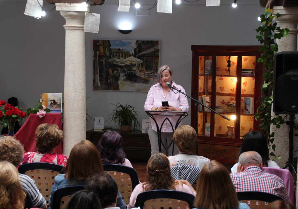 Abrió el acto la administrativa de la UP, Ana Belén Flores, que explicó lo que se había preparado para la ocasión con el objetivo de celebrar el Día del Libro. Seguidamente, intervino la concejala de Cultura, Ángela Notario. En primer lugar, destacó la labor de todas las personas que colaboraron en la preparación de la jornada. Además, la propia concejala participó con la primera lectura de la noche. Fue una composición propia titulada Soñando en azul y amarillo, una historia basada en la realidad y, tal vez, dedicada a su amiga y compañera Luisa Márquez. Por cierto, la regidora se encontraba entre el público, al igual que la concejala de la Mujer, Ramona López, y las concejalas socialistas María José Arias y Jose Chacón.