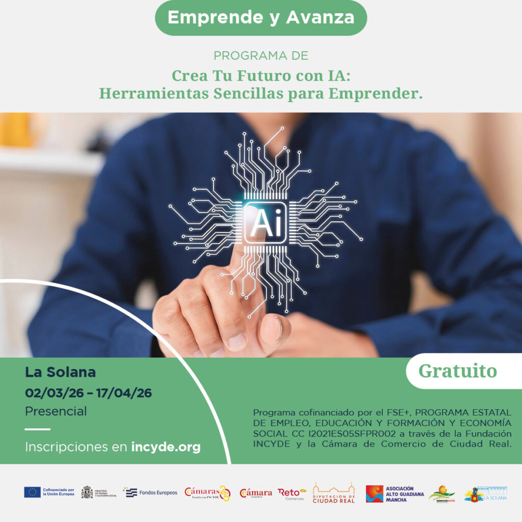 Las inscripciones pueden realizarse a través de la web oficial del programa: https://incyde.org/formacion/programa/emprende-y-avanza-crea-tu-futuro-con-ia-herramientas-sencillas-para-emprender-la-solana_fsdcm2603/