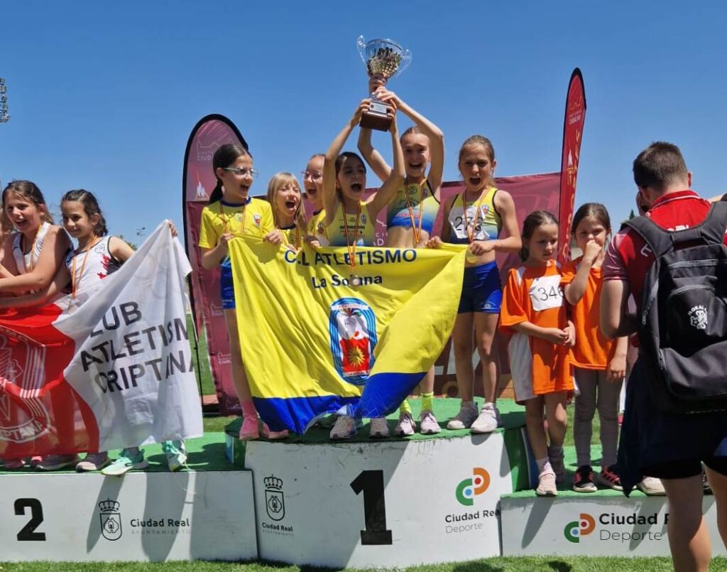La escuela de atletismo de La Solana volvió a dejar su sello en la tercera jornada de la fase regional del Campeonato Escolar, confirmando el excelente momento de su cantera. Tras las dos primeras citas, donde ya se lograron diez metales y varios oros, está vez han sido dos oros y un bronce. Uno de los nombres propios de la jornada fue Marta Moreno, que volvió a demostrar su enorme progresión en jabalina sub-16 con el primer puesto y un lanzamiento de 41,06 metros, nueva mejor marca personal. También brilló Nuria Marín, que logró la medalla de plata en peso sub-14 con 8,11 metros -también marca personal- y obtuvo un meritorio quinto puesto en 80 metros (11.24).