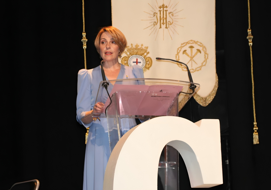 La presidenta de la Junta de Hermandades pronunciando el discurso de agradecimiento Foto: GACETA