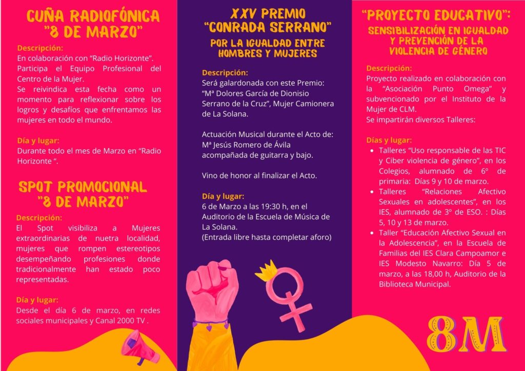 Desde el Centro de la Mujer os mostramos el Programa de Actividades con motivo del 8 de Marzo «Día Internacional de las Mujeres».